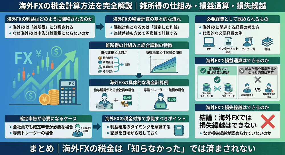これから海外FXを始める方はもちろん、すでに取引していて「税金はなんとなく後回しにしている」という方にとっても、必ず押さえておくべき内容です。